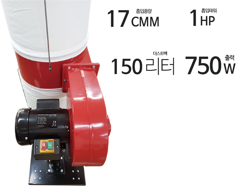 150리터의 더스트백 사이즈로 다양한 가공 환경에 사용 범위가 넓으며
