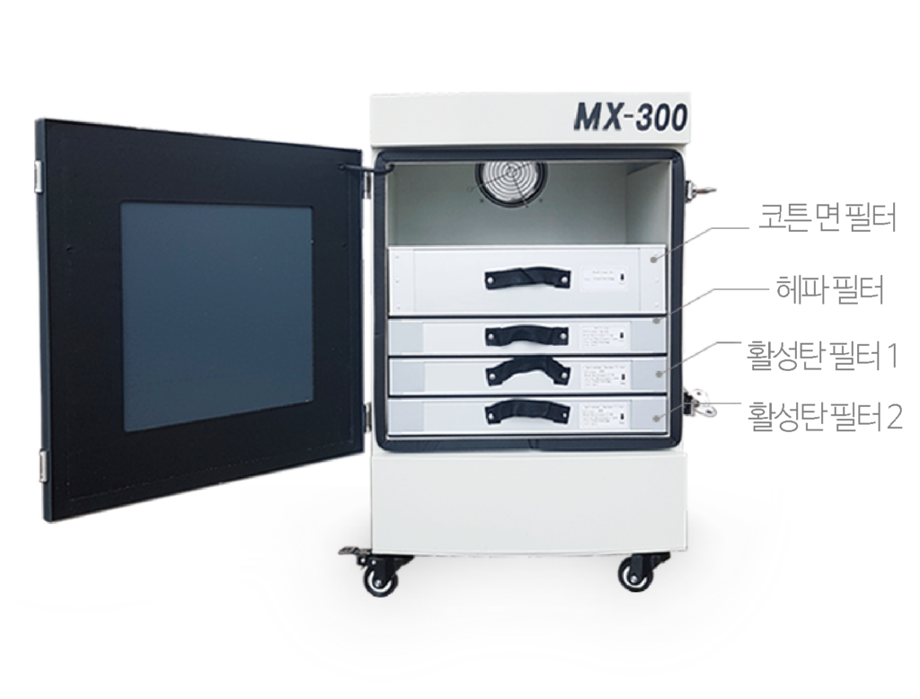 MX 시리즈는 2단계 활성탄 필터 설계로 자극성 냄새 제거에 특화 되었으며,